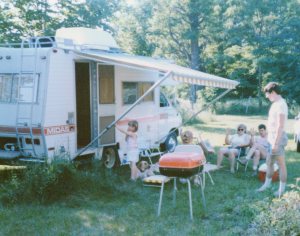 My older sister's family and their camper--the only bathroom and kitchen on our property for a while.