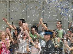 Confetti, really? Aw, shucks. And, Creepy Searchers, please take note of the uniformed officer packing heat.