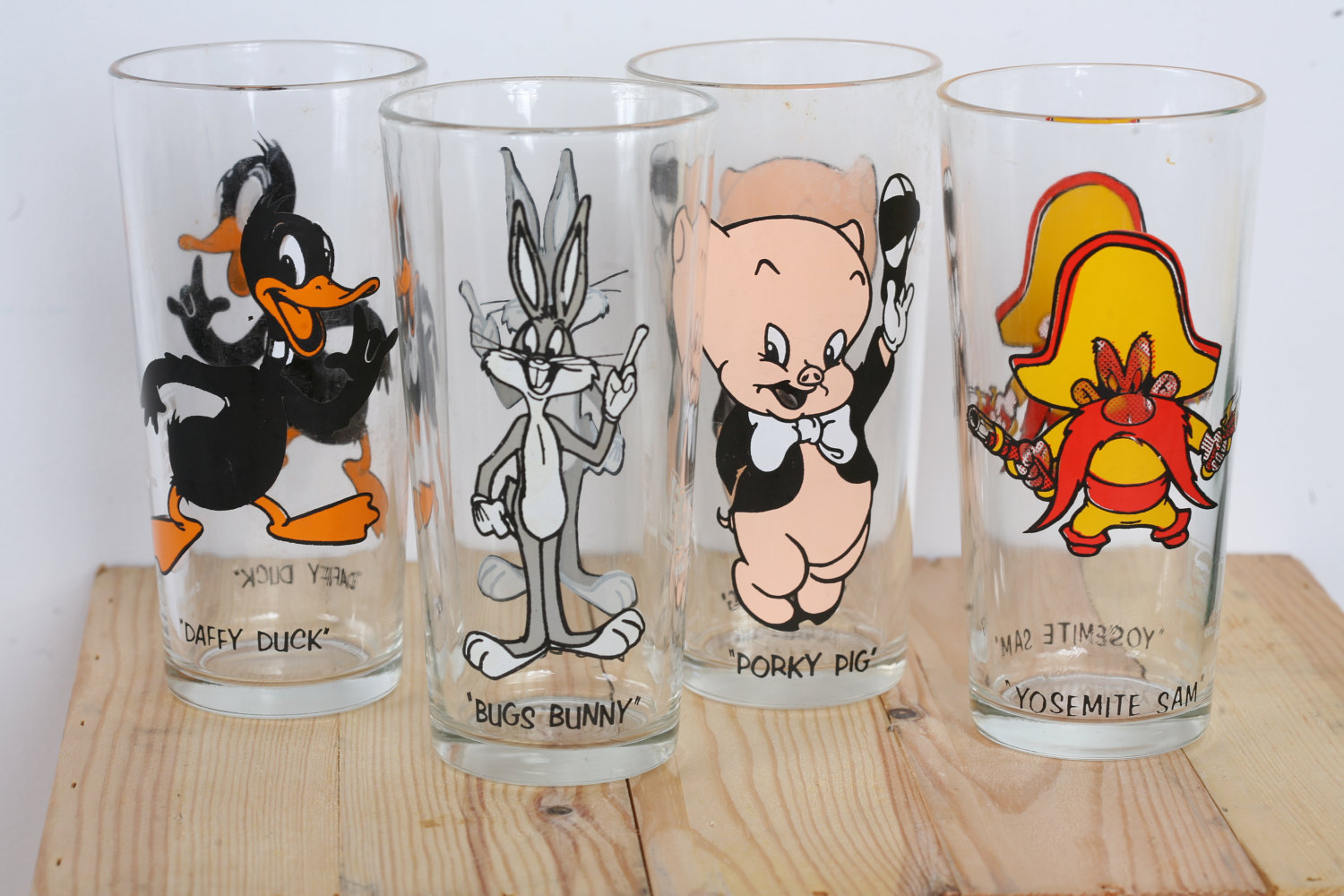 I had those glasses too. I chose Yosemity Sam. Our “steak” knives came from the gas station.