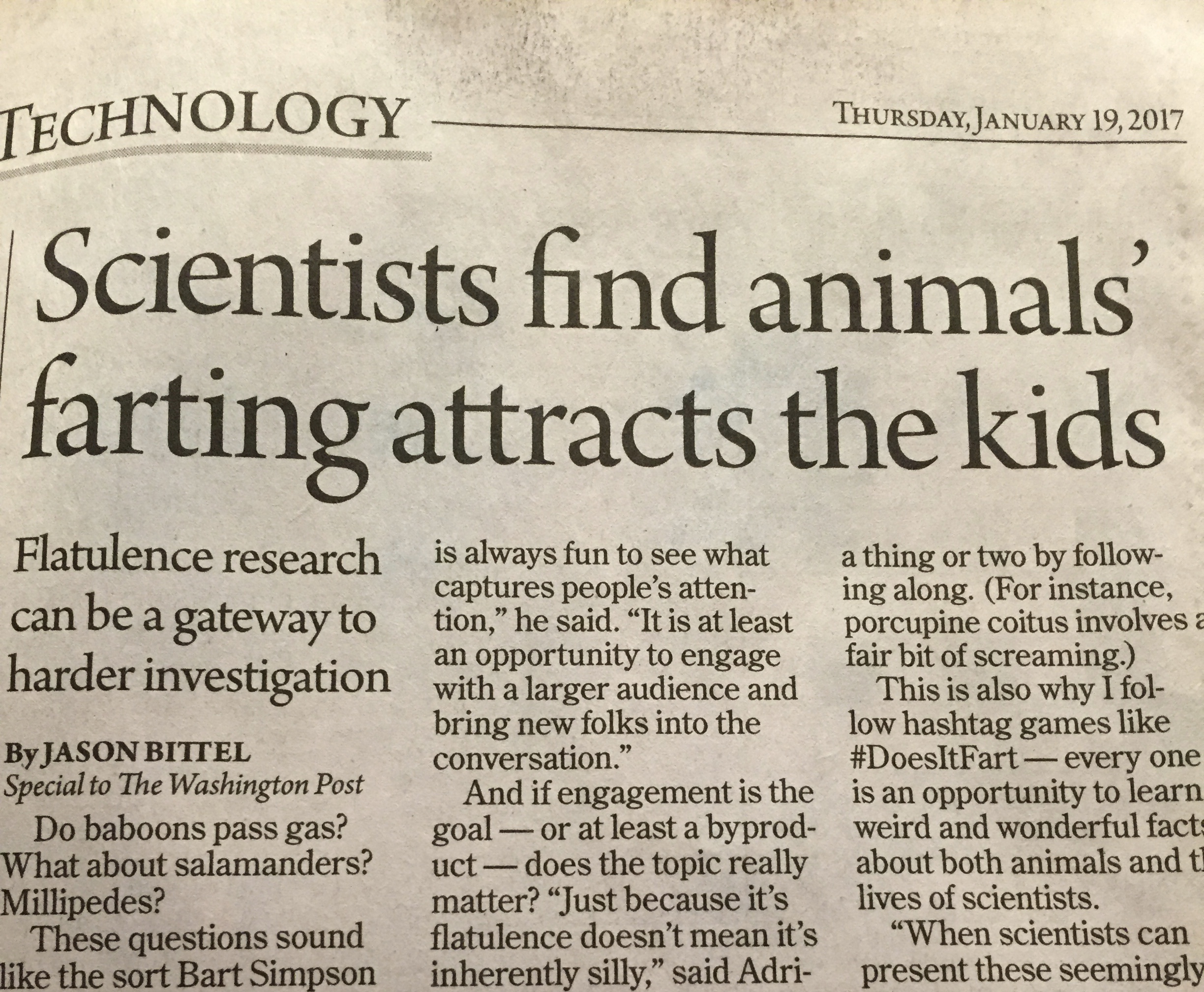 I find the conclusions of this study limited. The fact that animals and reptiles fart is completely riveting to me, and I’m an adult (or my advanced age would suggest as much).