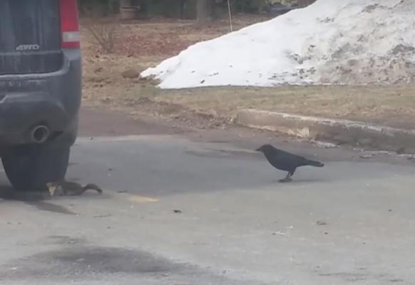 Feb. 7 (UPI) — A squirrel holding a piece of pizza and a crow engaged in a lengthy chase throughout a neighborhood in Canada. The squirrel can be seen enjoying its slice of pizza on a street in Nova Scotia, as the theiving crow hovers, waiting to snatch it away. Come on! Why can’t we all just get along, People…and crows…and squirrels?